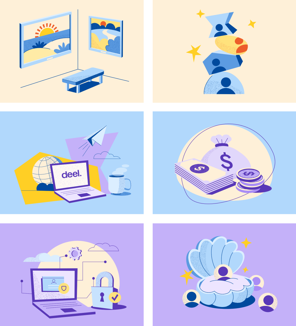 As Deel evolved into a global HR and payroll platform, it required a refreshed brand identity that could reflect its expanding services, international reach, and growing market presence. I contributed to shaping this new illustration identity, which became a core component of the brand system.